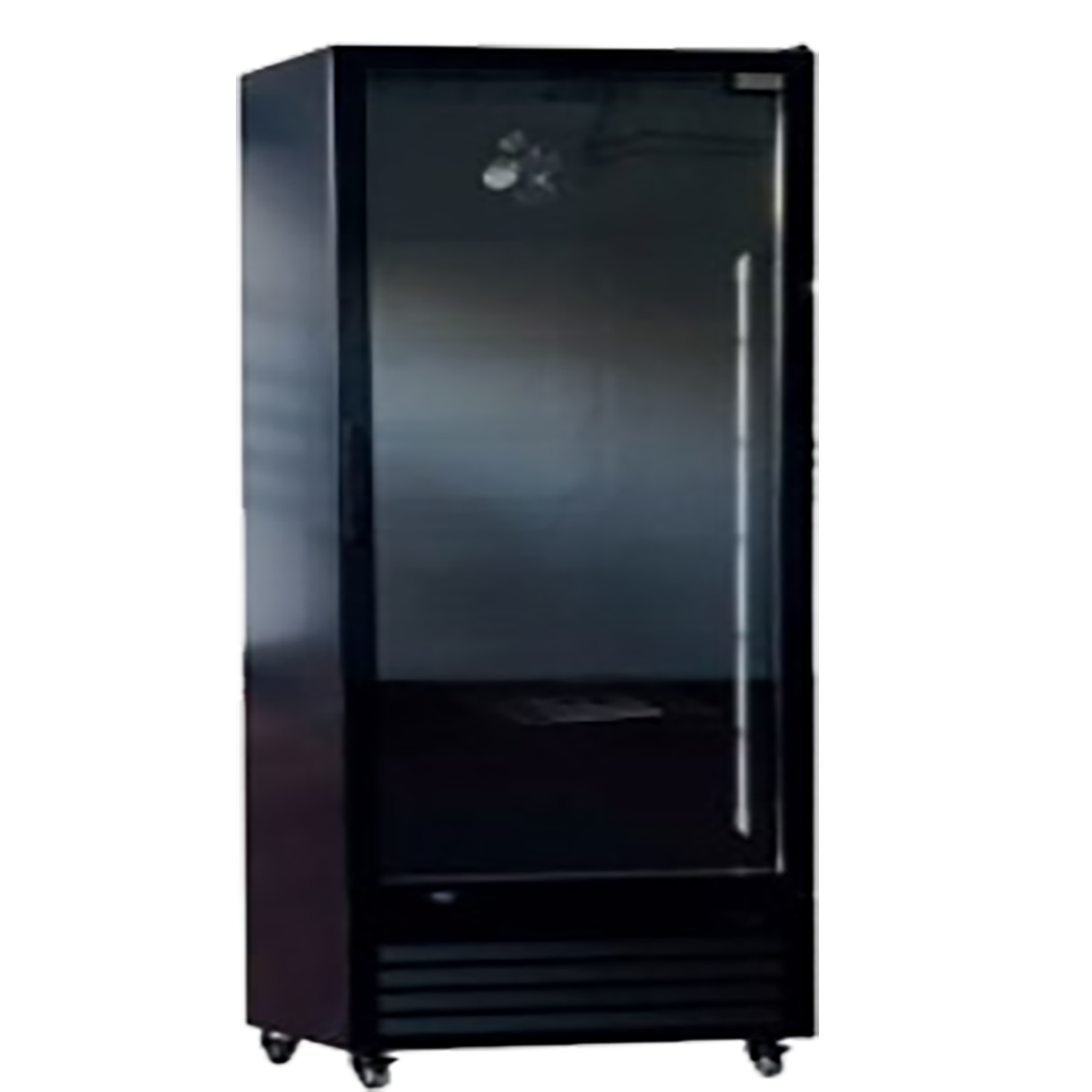 Armario expositor Subzero para cervezas con exterior en acero recubierto con pintura negra e interior en acero recubierto con pintura a fuego. Cuenta con puerta con bisagra y vidrio aislante.