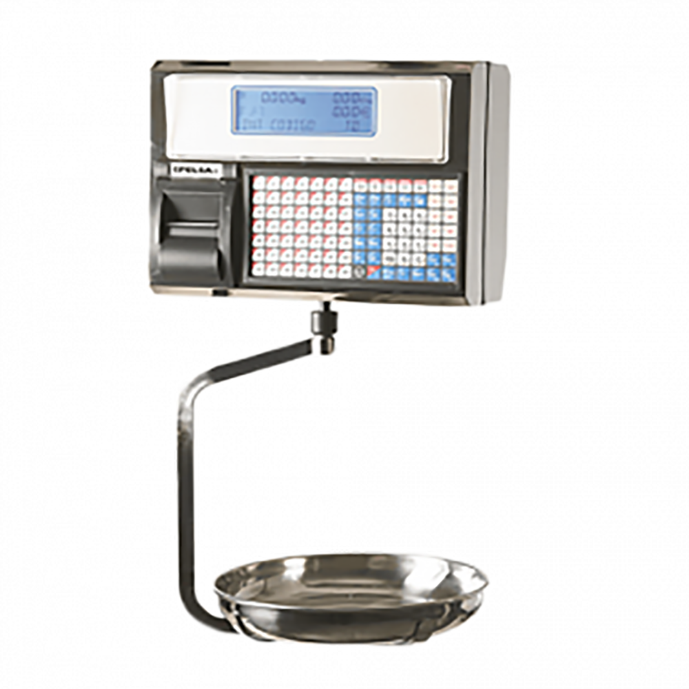 Balanza comercial colgante con impresora térmica, reposición automática a cero, teclas de puesta a cero y posibilidad de impresión interior a la carga mínima por normas de calibración.