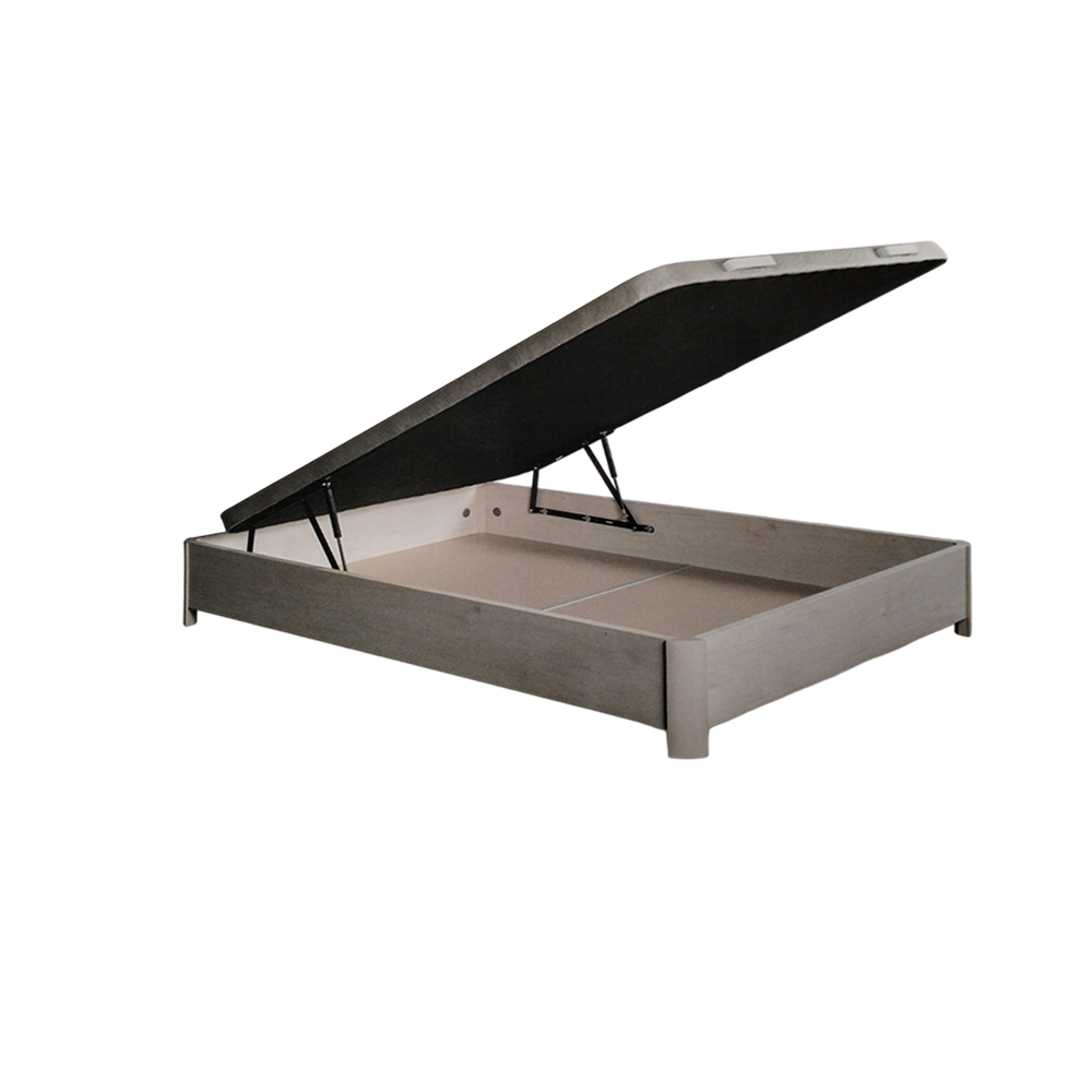 Canapé modelo Boston Lit con acabados en melamina, estructura de arcón fabricada en tablero melamínico de 30mm y patas en PVC. El fondo del canapé es de tablero de melamina de 16mm de espesor con tiradores de haya a juego.