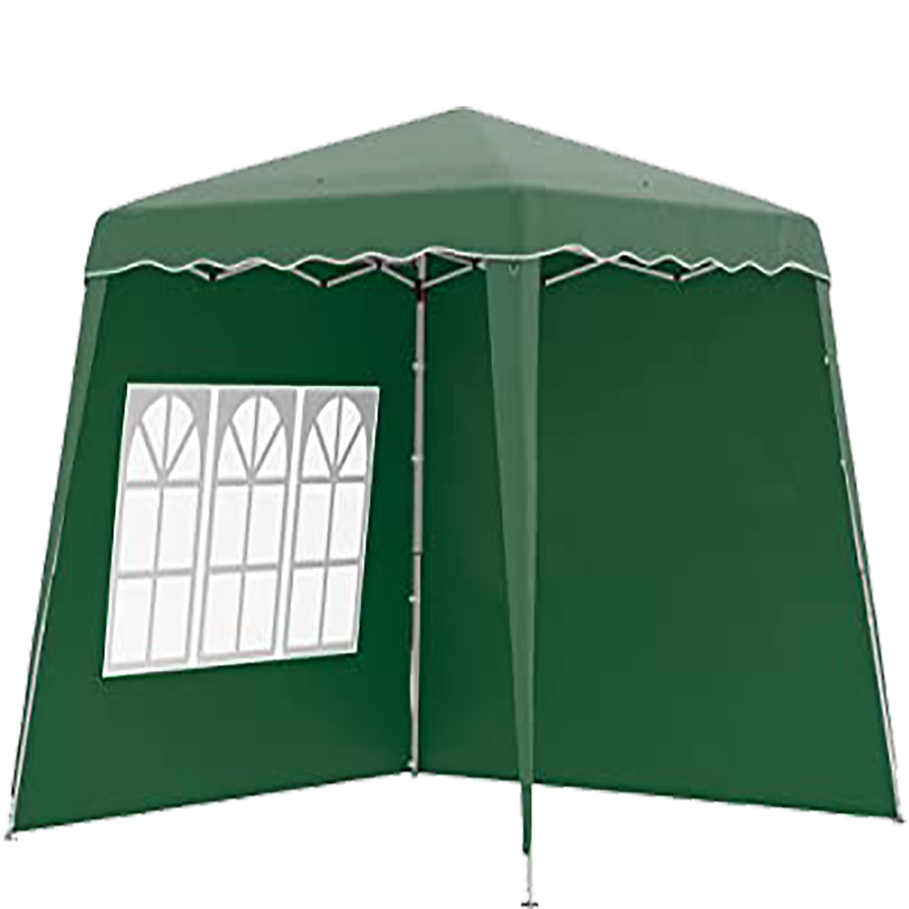 Carpa de exterior plegable. Cuenta con dos paredes, una de ellas con ventana.