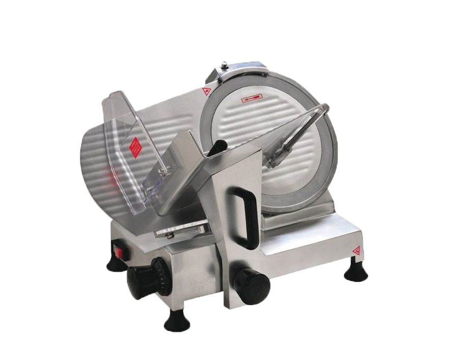 Cortadora de fiambre económica de la serie A con transmisión por correa. Su bancada es de aluminio lacado y piezas anodizadas. Dispone de afilador, cuchilla inoxidable y mandos eléctricos.