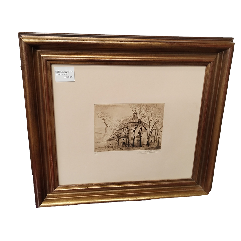 Cuadro grabado de Antonio de la Florida enmarcado en marco de madera.