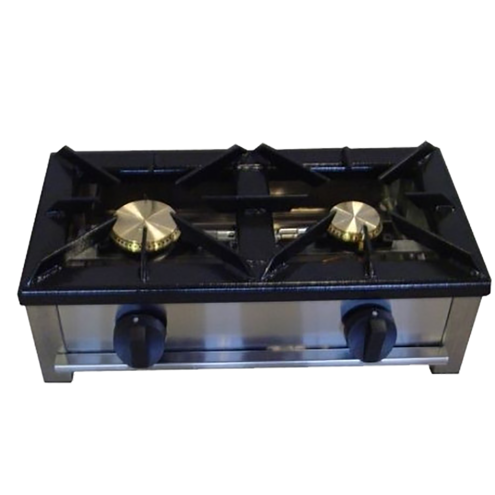 Fogón industrial de LaBari modelo 0108FG02 en horizontal fabricado en acero inoxidable con válvula de seguridad y parrillas de hierro.