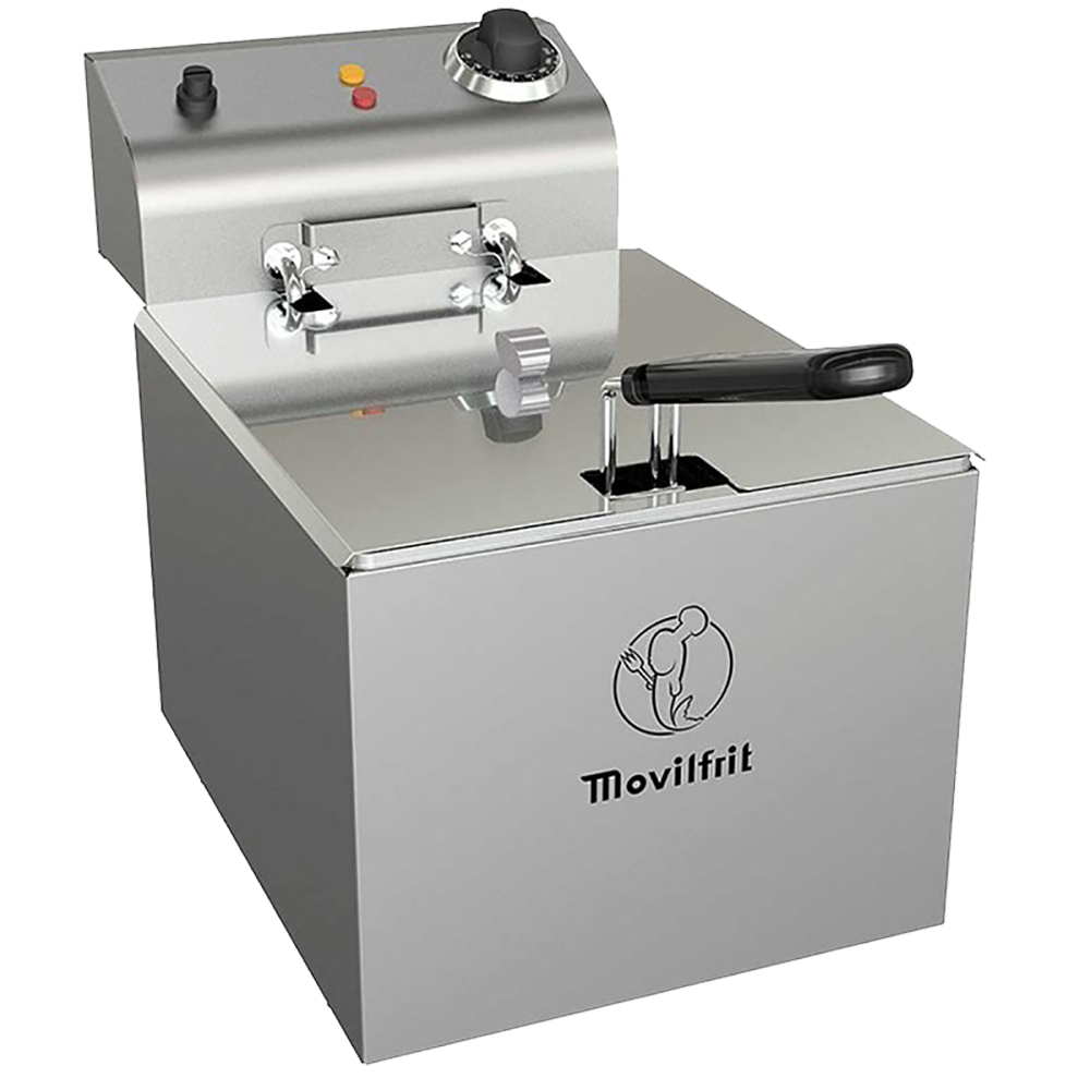 Freidora de Movilfrit modelo FA-10 con cabezal eléctrico extraíble y construida en acero inoxidable.