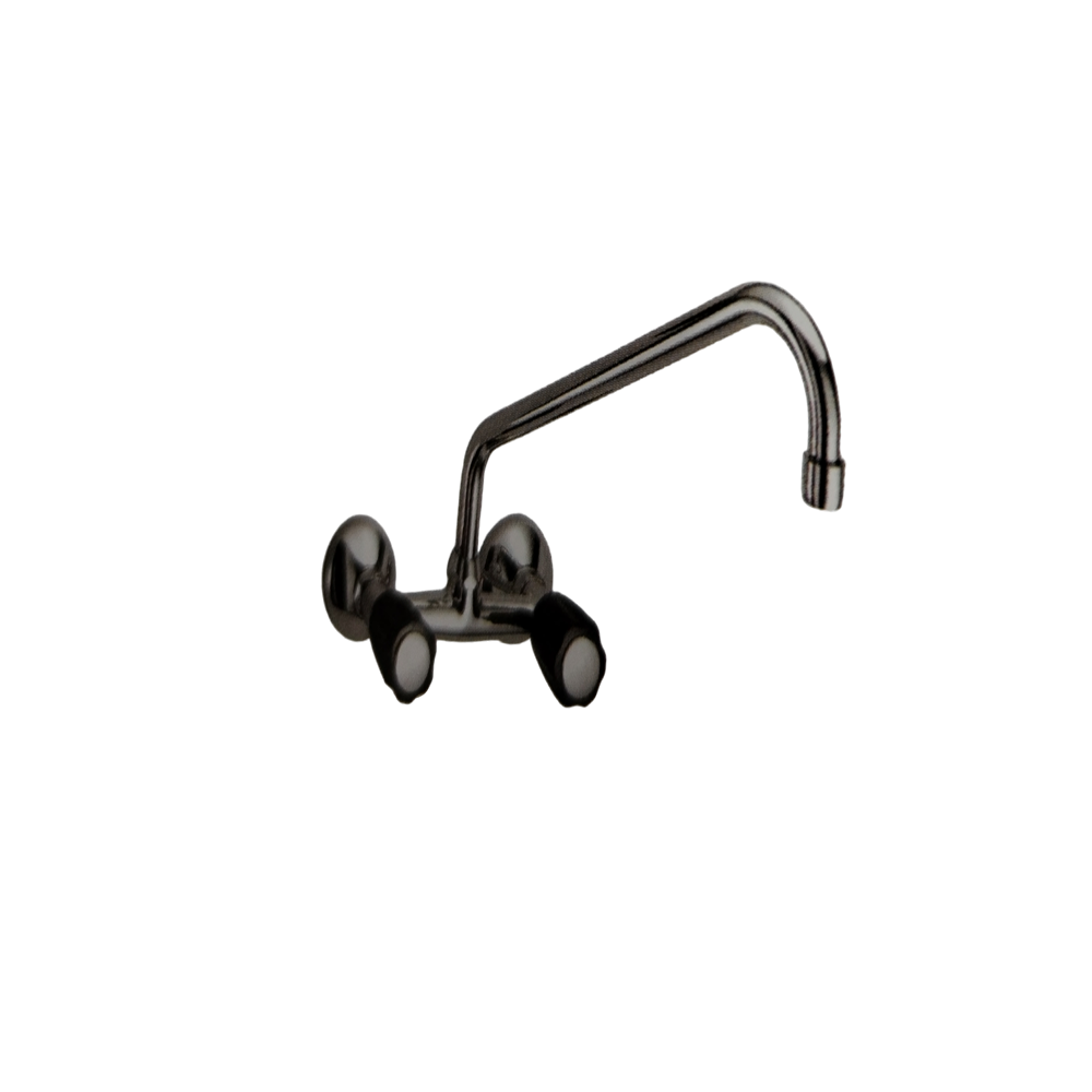 Grifo de pared de 2 aguas con caño de extrema calidad con cromados de alta densidad. Indicado para su colocación en mesas de preparación, fregaderos y mesas de lavado de vajilla.