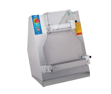 Laminadora con espesor de masa ajustable. Cuenta con botón de emergencias y su cuerpo está fabricado en acero inoxidable. Los rodillos de polietileno para evitar que la masa se pegue.