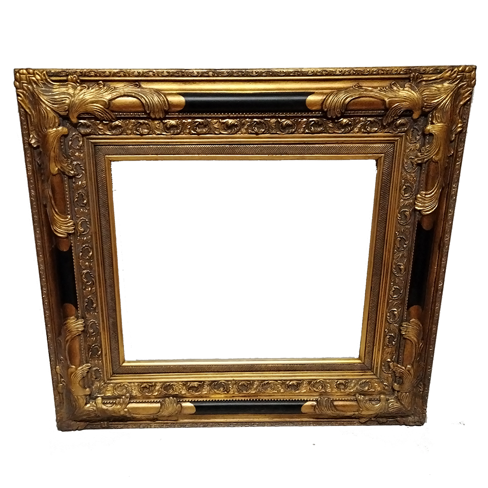 Marco dorado simple con tallados y adornos en color negro.