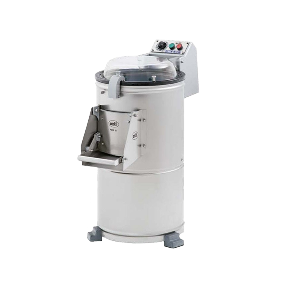 Peladora de patatas con estructura fabricada en acero inoxidable compatible con los requisitos de HACCP. Su temporizador detiene la máquina automáticamente cuando finaliza el tiempo ajustado. Dispone de evacuación desde la tapa frontal y su motor está protegido térmicamente. Pela y lava automáticamente. Cuenta con sistema de abrasión en plato y lateral.