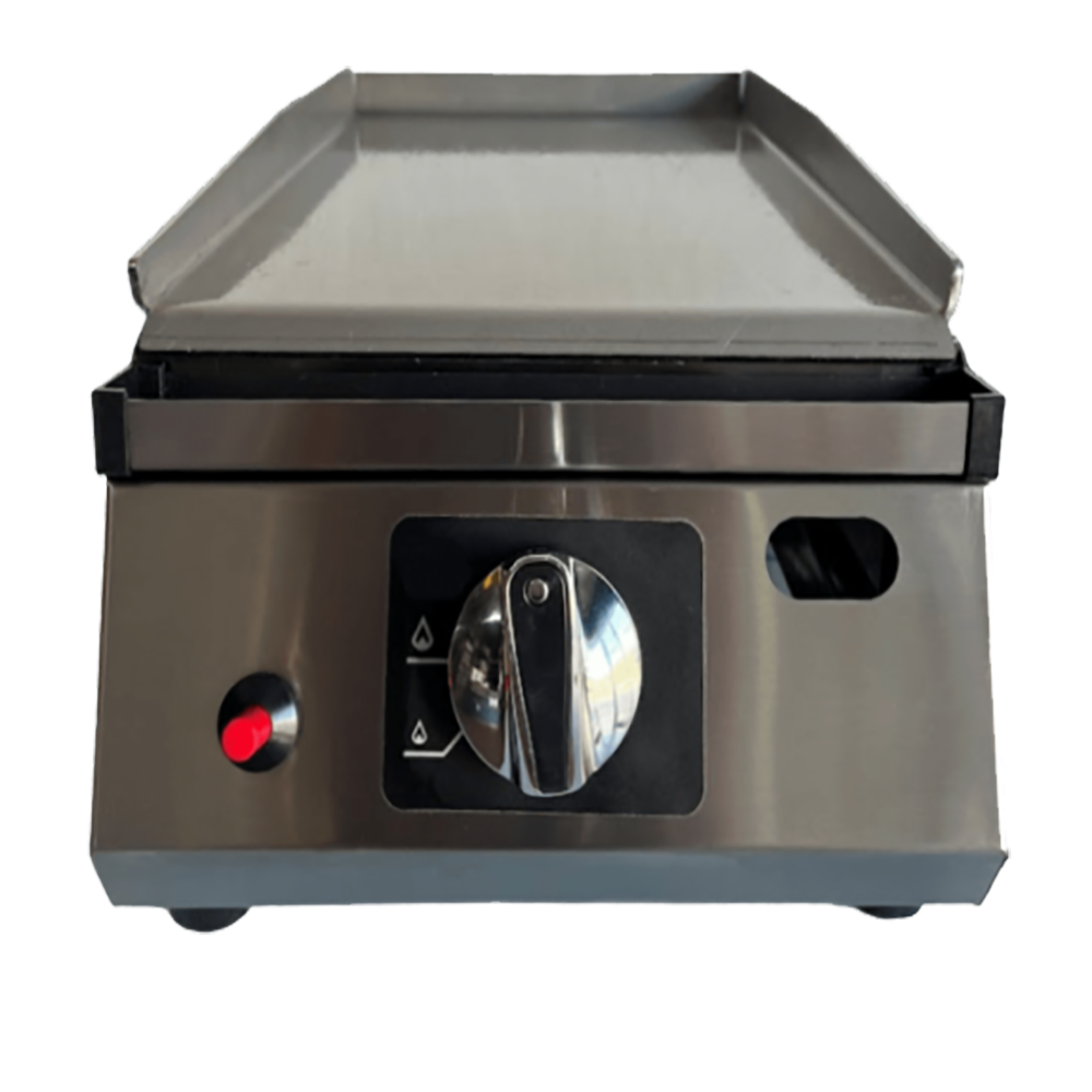 Plancha eléctrica de Eutron modelo DRNIPZG-30 compacta de alto rendimiento y fabricada en acero inoxidable. Dispone de superficie de cocción en acero HRP, bandeja recoge grasas extraíble y visor de llama incorporado.