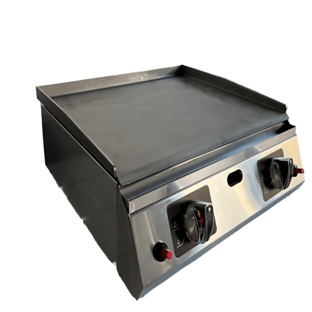 Plancha eléctrica de Eutron modelo DRNIPZG-50 con cuerpo fabricado en acero inoxidable, superficie de cocción en acero HRP, bandeja recoge grasas extraíble y visor de llama incorporado.