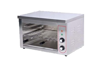 Salamandra fija fabricada en acero inoxidable dotada con resistencia blindada y termostato para el control de la temperatura. Cuenta con posición de rejilla en varios niveles, acceso frontal con bandeja extraíble y control luminoso. Dispone de recipiente inferior para recoger las migas.