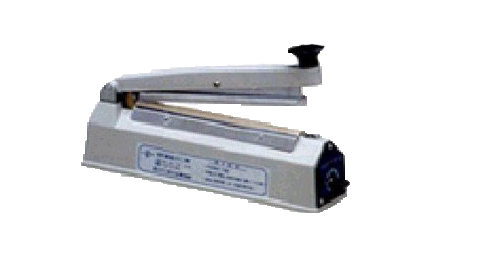 Soldadora de bolsas manual utilizada para realizar el sellado térmico de las bolsas. Incluye la cuchilla y está fabricado en metal.