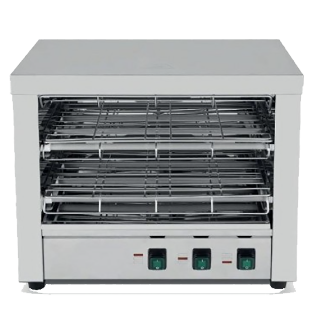 Tostador doble Marchef modelo QTO-360 con resistencias de cuarzo, bandeja recoge migas y dotado de dos rejillas.