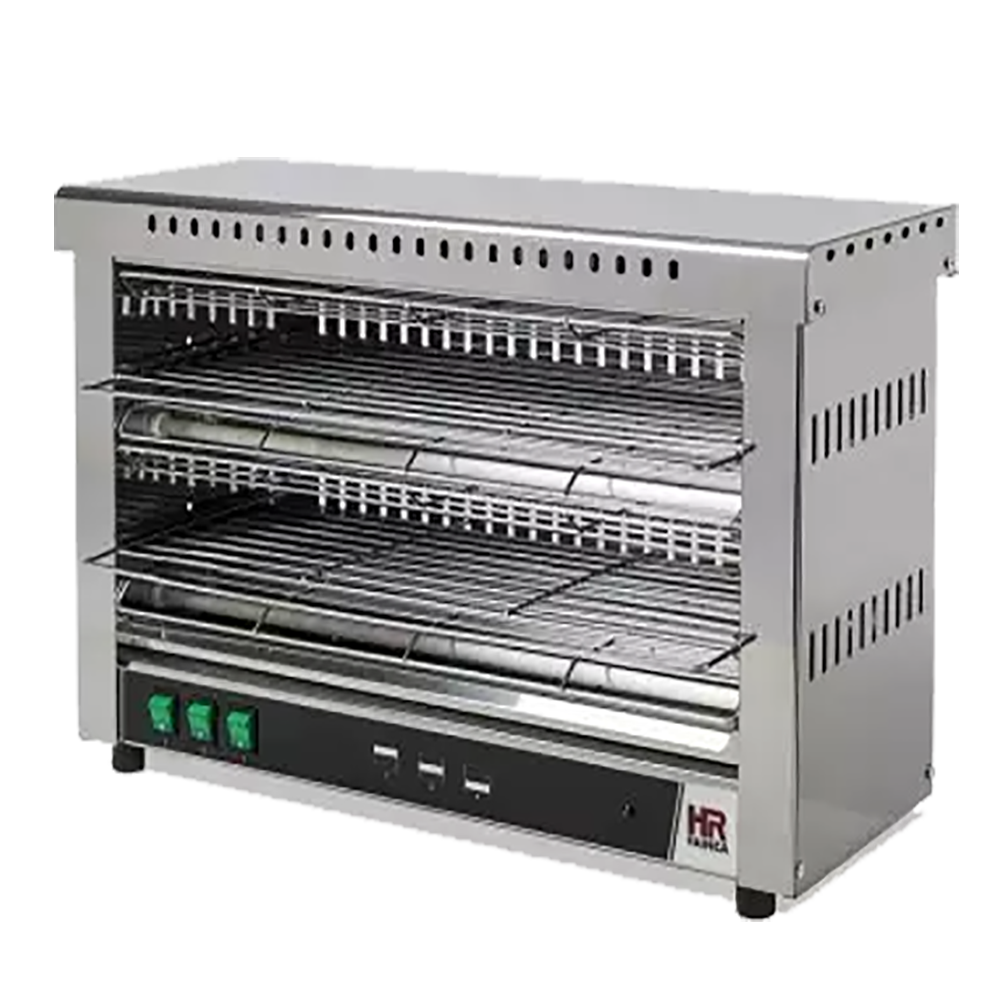 Tostador grande sin temporizador de HR modelo TO9SIN con resistencia de cuarzo y fabricada en acero inoxidable.
